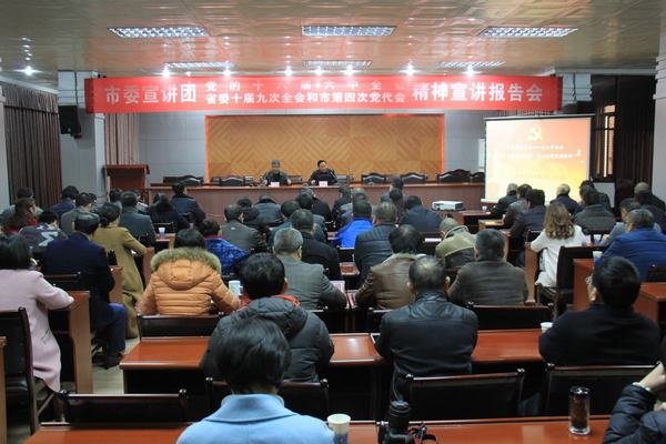 宣講會上,馬航東從中央、省委全會和市第四次黨代會召開的重大意義,黨的十八大以來中央、省委全面從嚴治黨的新舉措新經驗新成果,《關于新形勢下黨內政治生活的若干準則》、《中國共產黨黨內監督條例》和省委十屆九次全會《決定》的主要內容和和精神實質,資陽全市過去五年取得的成績以及今后五年經濟社會發展的總體目標、重點任務、主要措施等方面科學系統、深入淺出地作了精彩的分析講解,整場報告既有理論高度,又具有很強的針對性、實踐性和指導性,對于我們深入、完整、系統地領會黨的十八屆六中全會、省委十屆九次全會和市第四次黨代會精神具有很強的指導意義。