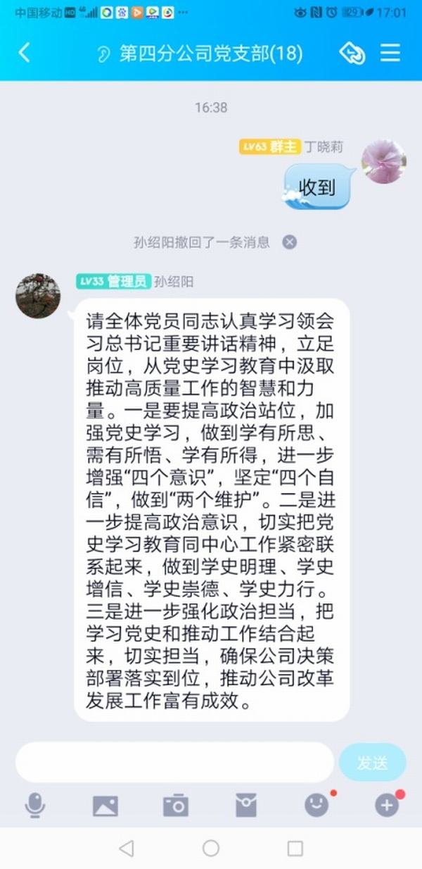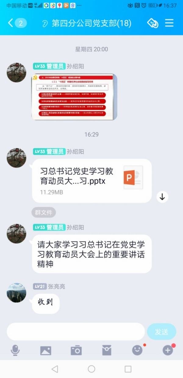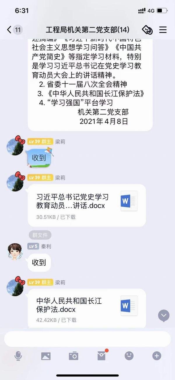機關第二黨支部利用支部QQ群對黨史學習教育作出要求(2021.04.08)