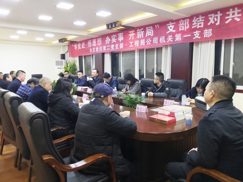 2021年12月13日,水發集團第二黨支部與工程局公司機關第一黨支部開展“學黨史 悟思想 辦實事 開新局”支部結對共建活動。集團黨委副書記、董事、副總經理、總會計師尹曉東,工程局公司黨委副書記、董事、總經理袁斌以普通黨員身份參加共建活動。