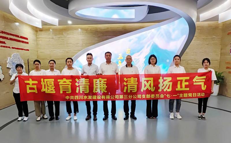 為慶祝中國共產黨建黨103周年,推進黨紀學習教育落地見效,強化新時代廉潔文化建設,筑牢廉潔思想防線。7月1日,三分公司黨支部組織黨員干部前往四川省都江堰水利發展中心“古堰清風”廉潔教育文化館,開展“古堰育清廉 清風揚正氣”主題黨日活動。