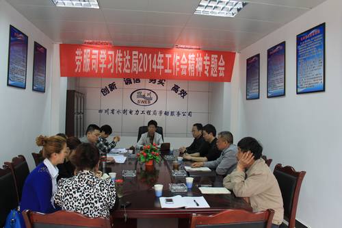 會議由勞服司經理陳章主持。副經理、工會主席何獻鋒傳達了局工作會精神。陳章在會上總結了勞服司2013年的工作,結合工作會精神,布置了2014年工作,并要求大家認真學習,在工作中予以貫徹落實。