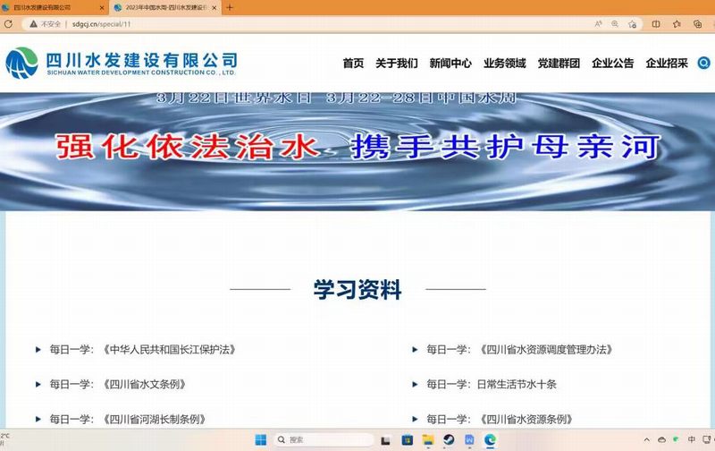 水,利萬物而不爭;水,人類生存之本。2023年3月22日是第三十一屆“世界水日”,3月22—28日是第三十六屆“中國水周”。在水利廳和集團部署下,建設(shè)公司積極組織開展以“強化依法治水?dāng)y手共護母親河”為主題的2023年“世界水日”“中國水周”活動。