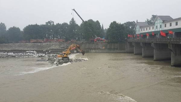 四川省水利電力工程局防汛機動搶險隊急災區之所急,牢記責任與使命,時刻準備著參加抗洪救災。此次洪災,廳直水管單位受損最嚴重、影響最大的當屬人民渠一處,人民渠一處人民渠干渠穿石亭江涵洞工程及人民渠一處清白江錦水河取水樞紐遭受嚴重洪災損毀。按照水利廳指派我局參與人民渠一處應急搶險的指令,工程局局長、黨委書記鄔清富迅即啟動防災救災應急預案,組建了親自擔任總指揮的防洪搶險指揮部,并指派副局長董蜀良擔任前線指揮長,總工程師汪輝德、局長助理鄒世界任前線副指揮長。7月11日和13日,先后調集組織230余名搶險隊員,50臺(套)大型應急搶險設備及指揮車、發電機等各種應急搶險保障物資,集結奔赴兩處受災現場,緊急投入抗洪搶險工作。
