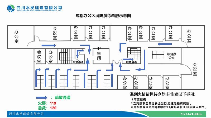 為貫徹落實習(xí)近平總書記關(guān)于防災(zāi)、減災(zāi)、救災(zāi)重要論述,認(rèn)真做好“預(yù)防為主、防消結(jié)合”方針和“人民至上、生命至上”安全發(fā)展理念的學(xué)習(xí)宣貫,樹牢“以練為戰(zhàn)、以戰(zhàn)為訓(xùn)”意識,嚴(yán)格執(zhí)行“三個避讓和三個緊急撤離”要求,將集團2024年第一次工作會議精神落地落實,把好“消防關(guān)”、建好“安全門”、守好“逃生路”,建設(shè)公司黨委高度重視、積極響應(yīng),成立應(yīng)急演練領(lǐng)導(dǎo)小組,迅速制定《四川水發(fā)建設(shè)有限公司2024年火災(zāi)疏散逃生應(yīng)急演練方案》,于2024年3月1日開展建設(shè)公司火災(zāi)疏散逃生應(yīng)急演練。