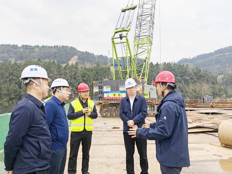 楊志文一行深入建設(shè)公司承建的觀音寺渡槽施工現(xiàn)場(chǎng),實(shí)地察看了數(shù)字化鋼筋綜合加工廠、中心實(shí)驗(yàn)室、空心墩墩身、鋼棧橋等位置,同時(shí)聽(tīng)取項(xiàng)目管理人員對(duì)亭子口灌區(qū)一期工程I標(biāo)段工程概況、關(guān)鍵性工程觀音寺渡槽概況的匯報(bào),詳細(xì)了解了項(xiàng)目的建設(shè)進(jìn)展、數(shù)字化運(yùn)用、質(zhì)量管理、配套設(shè)施等實(shí)際情況,并就項(xiàng)目的規(guī)劃設(shè)計(jì)、施工方法、建設(shè)意義等方面進(jìn)行了探討交流。