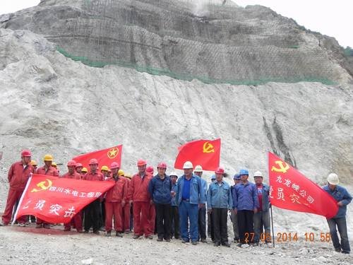 6月27日上午11時,甘肅省迭部縣九龍峽電站業(yè)主九龍峽公司、監(jiān)理部、四川省水利電力工程局九龍峽電站樞紐工程項目經(jīng)理部黨員及參戰(zhàn)員工來到大壩樞紐施工現(xiàn)場,面對熱火朝天的施工場面,舉行了黨員先鋒隊宣誓儀式。