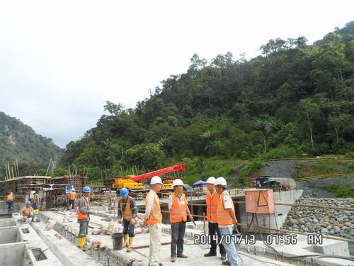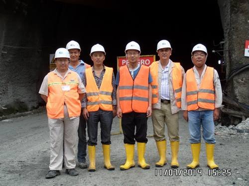 7月11日,汪輝德在項(xiàng)目部經(jīng)理高代勝、副經(jīng)理李靜、楊聰明及項(xiàng)目部總工程師袁路等的陪同下,先后查看了厄瓜多爾TP項(xiàng)目部取水口閘壩、隧洞進(jìn)出口、地下廠房、、尾調(diào)室、泄水洞等施工現(xiàn)場(chǎng),詳細(xì)了解了工程的進(jìn)度、質(zhì)量、安全、設(shè)計(jì)和文明施工等工作,詢問了施工一部和中水對(duì)外公司、監(jiān)理公司之間關(guān)系協(xié)調(diào)等情況,對(duì)目前工程的進(jìn)展給予充分的肯定,同時(shí)也指出了工地現(xiàn)場(chǎng)的一些不足之處。