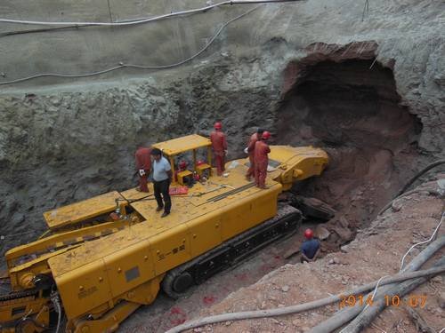 經過1周時間的安裝,工程局第一臺懸臂式掘進機于 2014年10月7日在王家坪隧洞出口工作面掛口正式投入運行,武引二期西梓干渠第五標段隧洞工程由此進入施工高峰期。