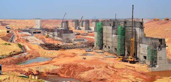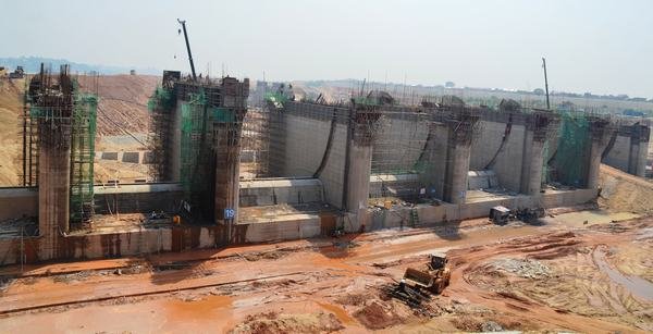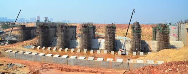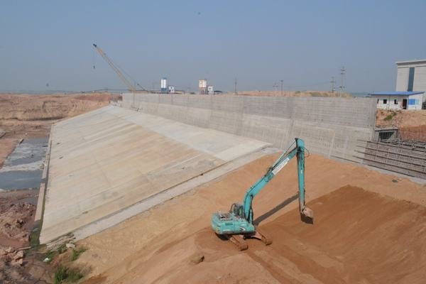 安裝間副廠房廠房機(jī)組段上游魚道反護(hù)坡閘壩閘壩消力池全景