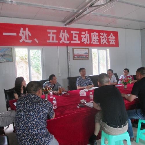 一處處長范雪山主持了下午的互動座談會。他代表一處對陳道剛一行表示歡迎,并介紹了目前承建項目的生產經營情況以及管理工作中的總體思路;葉發科就一處標準化建設制度建設和執行、安全文明施工進行了介紹;一處總工程師王川介紹了施工現場的管理;處相關部門負責人分別就本部門的工作做了發言。