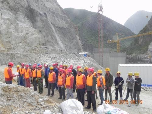 6月5日上午,九龍峽電站樞紐工程項目部在上游圍堰舉行防汛應(yīng)急演練。項目部經(jīng)理陳道剛?cè)窝菥毧傊笓],九龍峽電站安委會主任楊利民、副主任袁志勇、徐全民等來工地現(xiàn)場指導(dǎo)并共同參加演練。