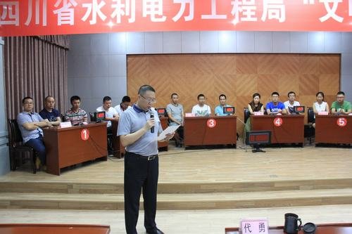 2015年7月21日,四川省水利電力工程局“文明工地”知識競賽在資陽如期舉行。來自全局11個單位的33名選手參加了現場比賽。工程局局長、黨委書記鄔清富,局黨委委員、常務副局長董蜀良,局黨委副書記、工會主席代勇,局黨委委員、紀委書記王裕明及局經營處處長丁毅、質安處處長李朝忠到場指導并參與裁評。