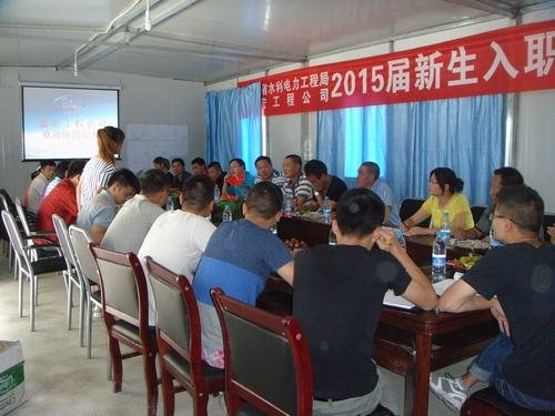 2015年7月31日下午,為使新進(jìn)大學(xué)生員工盡快習(xí)慣工地環(huán)境和感受到項(xiàng)目大家庭的溫暖,局鑫宏工程公司在固滴電站項(xiàng)目部組織召開(kāi)了新進(jìn)大學(xué)生員工歡迎會(huì)。公司領(lǐng)導(dǎo)、各項(xiàng)目部領(lǐng)導(dǎo)、各部門(mén)負(fù)責(zé)人及全體學(xué)生參加了會(huì)議。會(huì)議由新藏項(xiàng)目綜合部長(zhǎng)李潔主持。