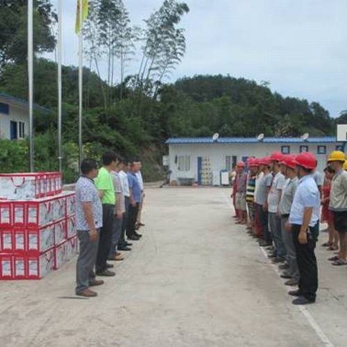 局第一工程處參建職工代表列隊歡迎, 宋慶伍作了慰問講話。受縣委書記王光柱同志委托,他代表宜賓縣委、縣人民政府向參加蟠龍湖水庫建設的員工表示誠摯的慰問!他說,蟠龍湖水庫作為該縣唯一的一座中型水庫,是宜賓市在建的最大水利工程,更是一項利民工程。工程開工以來,建設者們克服了交通不便、工程任務緊等困難,突出工作重點,優化施工,有力地推進了工程建設,再一次展現了“四川水利鐵軍”的風采和國家一級施工企業的優秀企業文化。四川省水利電力工程局具有豐富的施工經驗和管理能力,在宜賓地區承建了多個水利水電項目,為開發宜賓水利水電資源做出了巨大貢獻,促進了宜賓縣的地方經濟發展。工程建成后,雙龍鎮不僅有高峽出平湖的壯景麗畫,而且將擴灌萬畝良田,惠澤四方百姓。在此,請同志們在辛勤工作的同時保重身體,為宜賓農田水利建設再立新功。
