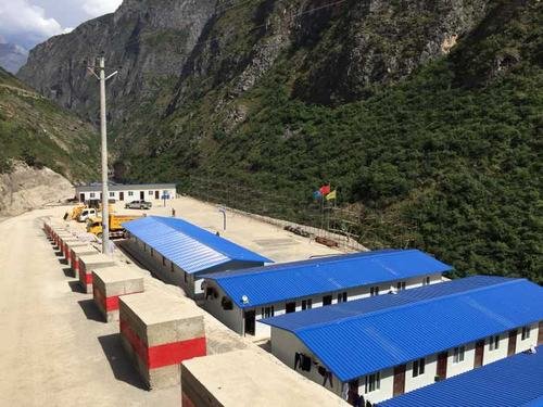 水洛河潺潺的流水,斜陽映襯著青翠的山巒。在這美麗的山水圖畫間,天藍色的板房錯落有致,嫩芽初上的花臺上隨風飄揚的徽旗略顯莊嚴,白灰色的籃球場上時而傳來陣陣喝彩……博瓦水電站首部樞紐工程項目經理部臨建設施已建成投用。