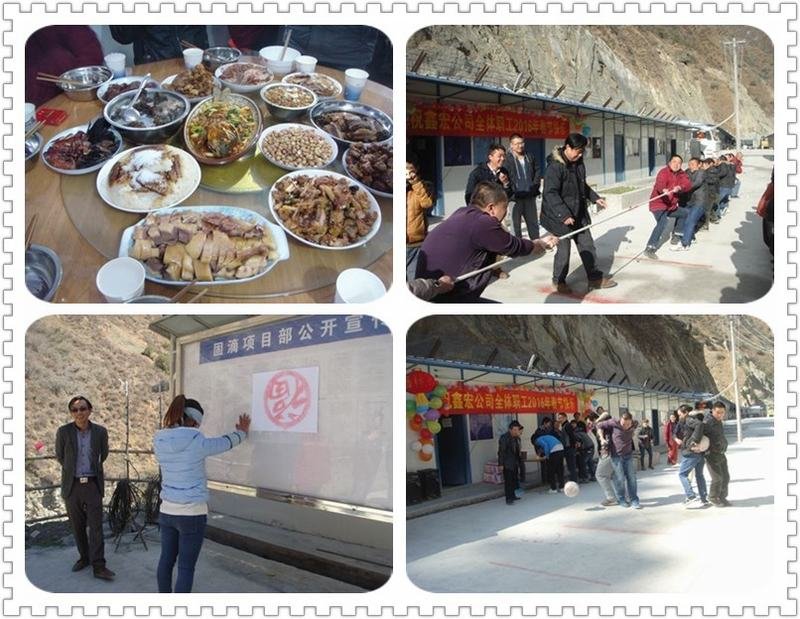 為豐富固滴項(xiàng)目工地職工的文娛生活,使春節(jié)期間留在工地繼續(xù)奮戰(zhàn)的全體員工能感受到家的溫馨和氛圍,項(xiàng)目部通過(guò)精心組織和策劃,開(kāi)展了一場(chǎng)別開(kāi)生面的歡度春節(jié)活動(dòng)。2016年2月8日,鑫宏工程公司在固滴項(xiàng)目部開(kāi)展2016年歡慶春節(jié)活動(dòng),共同在這個(gè)辭舊迎新的日子展望未來(lái)、攜手共創(chuàng)固滴項(xiàng)目嶄新的一年。