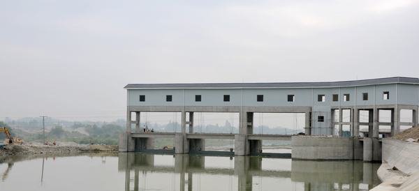 順江堰引水樞紐工程位于新津縣五津鎮,主要由2孔進水閘、3孔泄洪沖沙閘、270米長的攔河壩、1310米的左右岸上下游堤防等組成,合同金額為3565.8萬元。完成主要實物工程量:砂卵石開挖37萬方,回填11萬方,混凝土澆筑6.7萬方,膠凝顆粒料填筑2.7萬方,砼孔樁19根,鋼筋制安460噸,房屋建筑557平米,閘門制作安裝85噸,啟閉機安裝5臺。