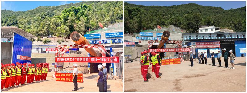 心系職工送清涼,一縷清風(fēng)入心田。2023年7月25日,四川省水利電力工會(huì)副主席張玉奎,水發(fā)集團(tuán)資深高管鄔清富、群團(tuán)工作部部長(zhǎng)馬嵐、副部長(zhǎng)李永靜一行,赴亭子口灌區(qū)一期工程總承包(EPC)第Ⅰ標(biāo)段施工項(xiàng)目?jī)x隴縣先鋒鎮(zhèn)二郎村隧洞開(kāi)展“夏送清涼”慰問(wèn)及安全監(jiān)督檢查活動(dòng),向亭子口灌區(qū)一期工程施工一線干部職工送去防暑降溫物品,將省水電工會(huì)、集團(tuán)的關(guān)心送到職工身邊。